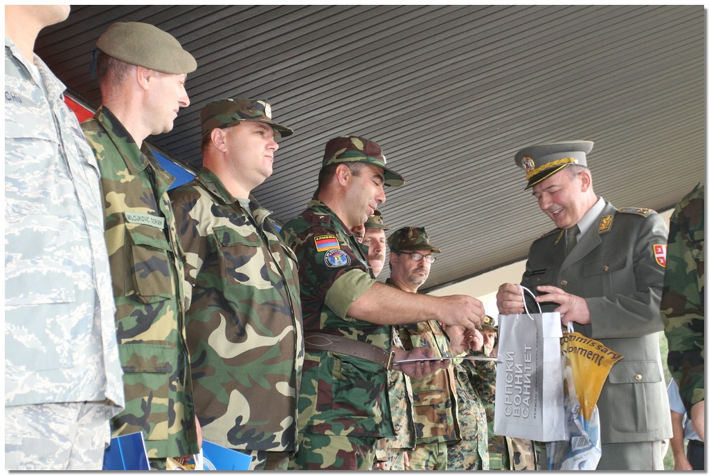 У име санитетске службе Војске Србије учеснике вежбе поздравио је бригадни генерал Вељко Тодоровић. ''Показали смо да у случају природне или технолошке несреће сви делујемо као један тим, да смо сложни и ефикасни, да поштујемо исте принципе у организацији санитетске службе и да користимо исте поступке и процедуре у хуманој мисији лечења повређених и оболелих'', рекао је Тодоровић и пожелео представницима Црне Горе успешну реализацију наредне вежбе MEDCEUR 2010.